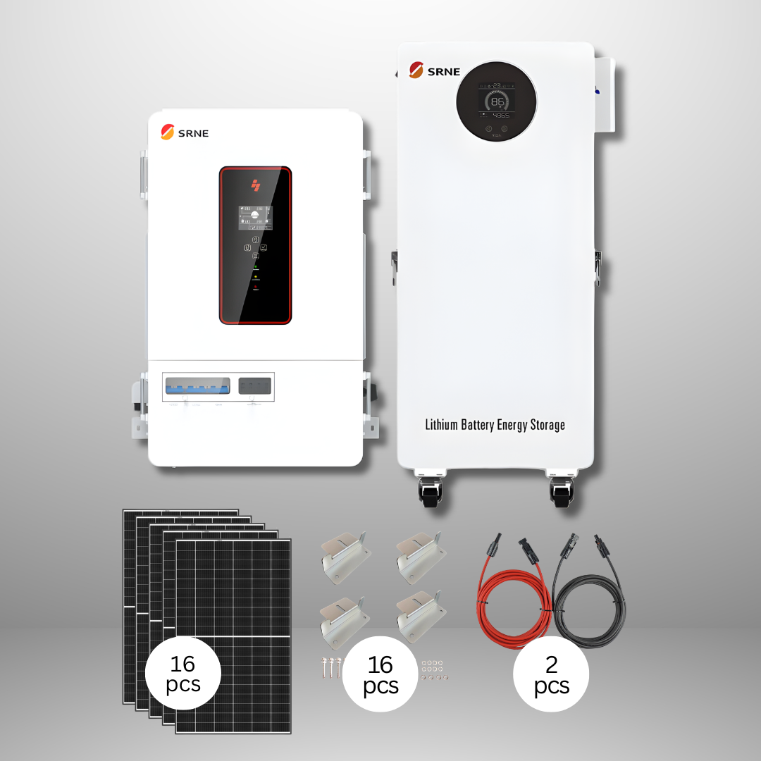 SRNE ASP 6.5kW Off-Grid Inverter + SE 16.07kWh Battery Storage + 8x425W Solar Panels